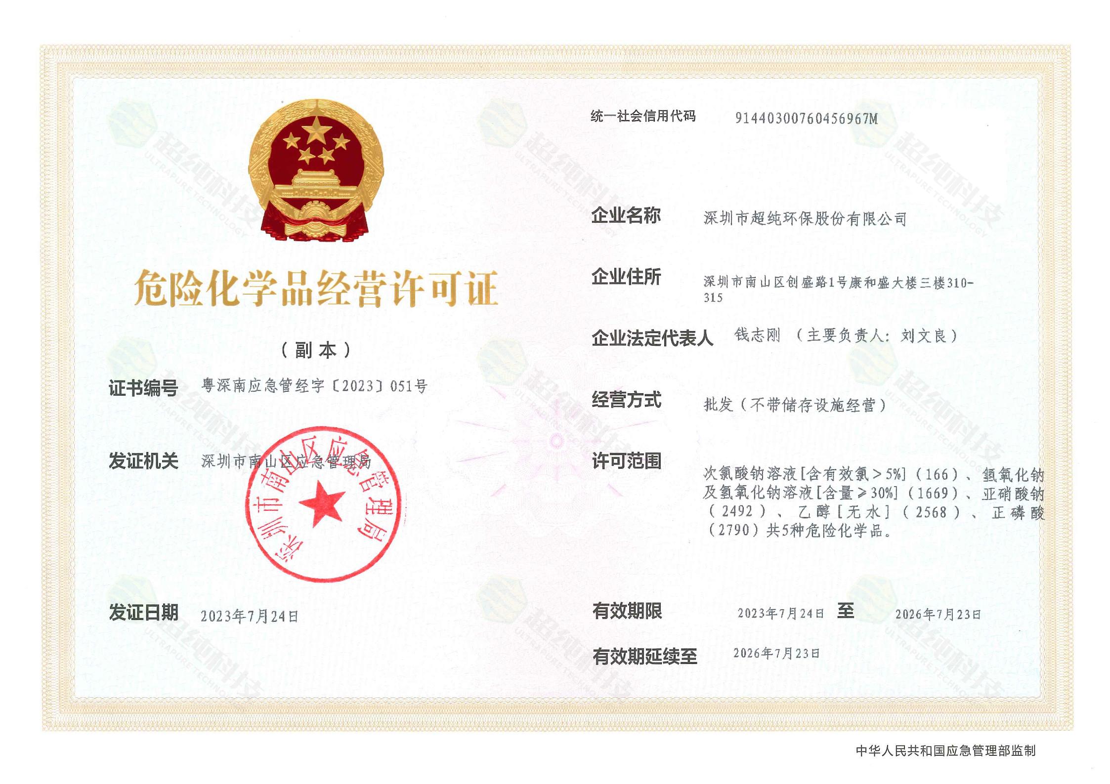 危險化學品經營許可證